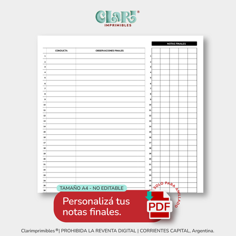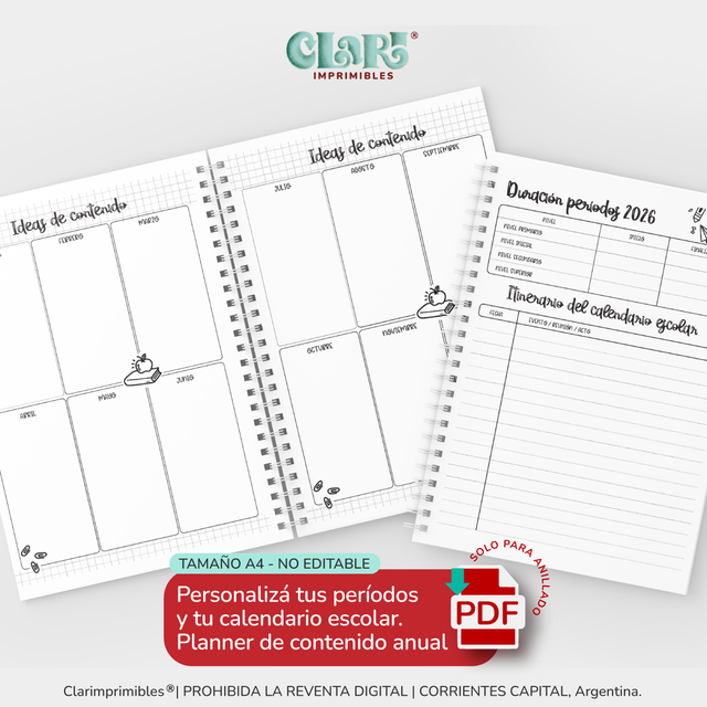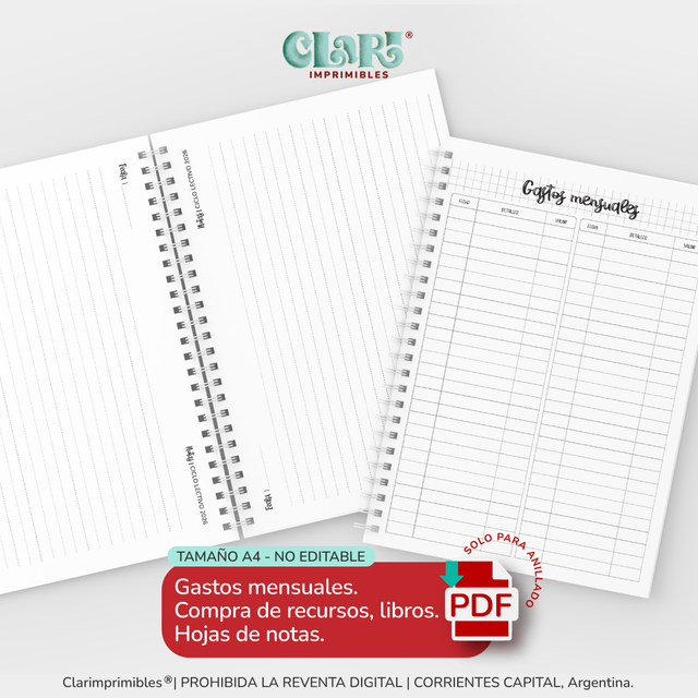 Está completamente prohibida la REVENTA o INTERCAMBIO de los Clarimprimibles en plataformas de venta online o en redes sociales, sea este con o sin fines de lucro. La violación del derecho de propiedad intelectual está penada por la LEY 11.723