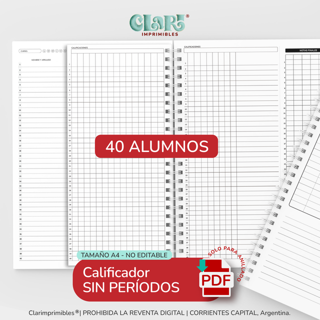 - CALIFICADORES para 40 alumnos en total, con las opciones: cuatrimestral, trimestral, bimestral y sin períodos.