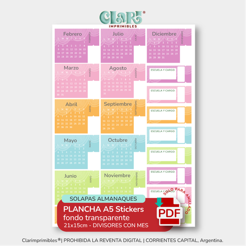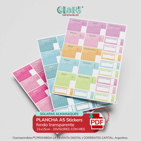 10 planchas PNG fondo transparente de 21x15cm (A5) de diferentes colores.